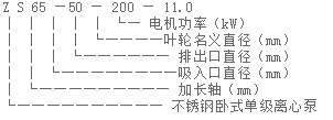 ZS型不銹鋼臥式單級離心泵為泵軸直聯型聯結,由泵、泵軸和標準電機組成: